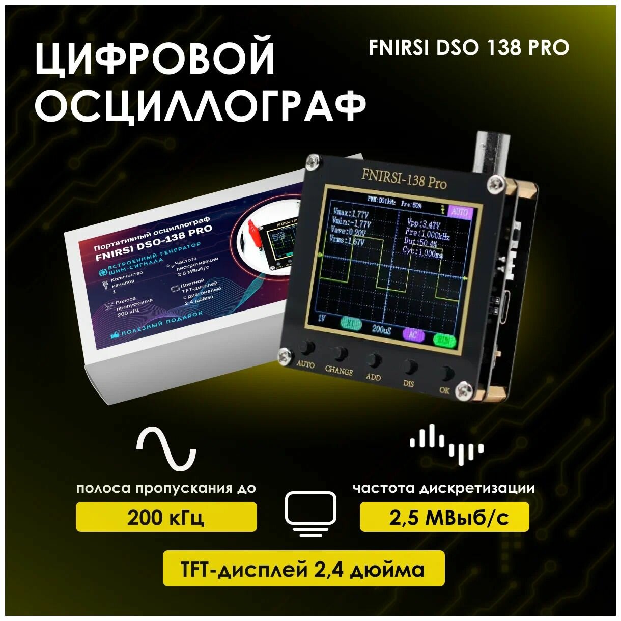 FNiRSi DSO138 PRO Ручной цифровой осциллограф 200кГц с экраном 2.4