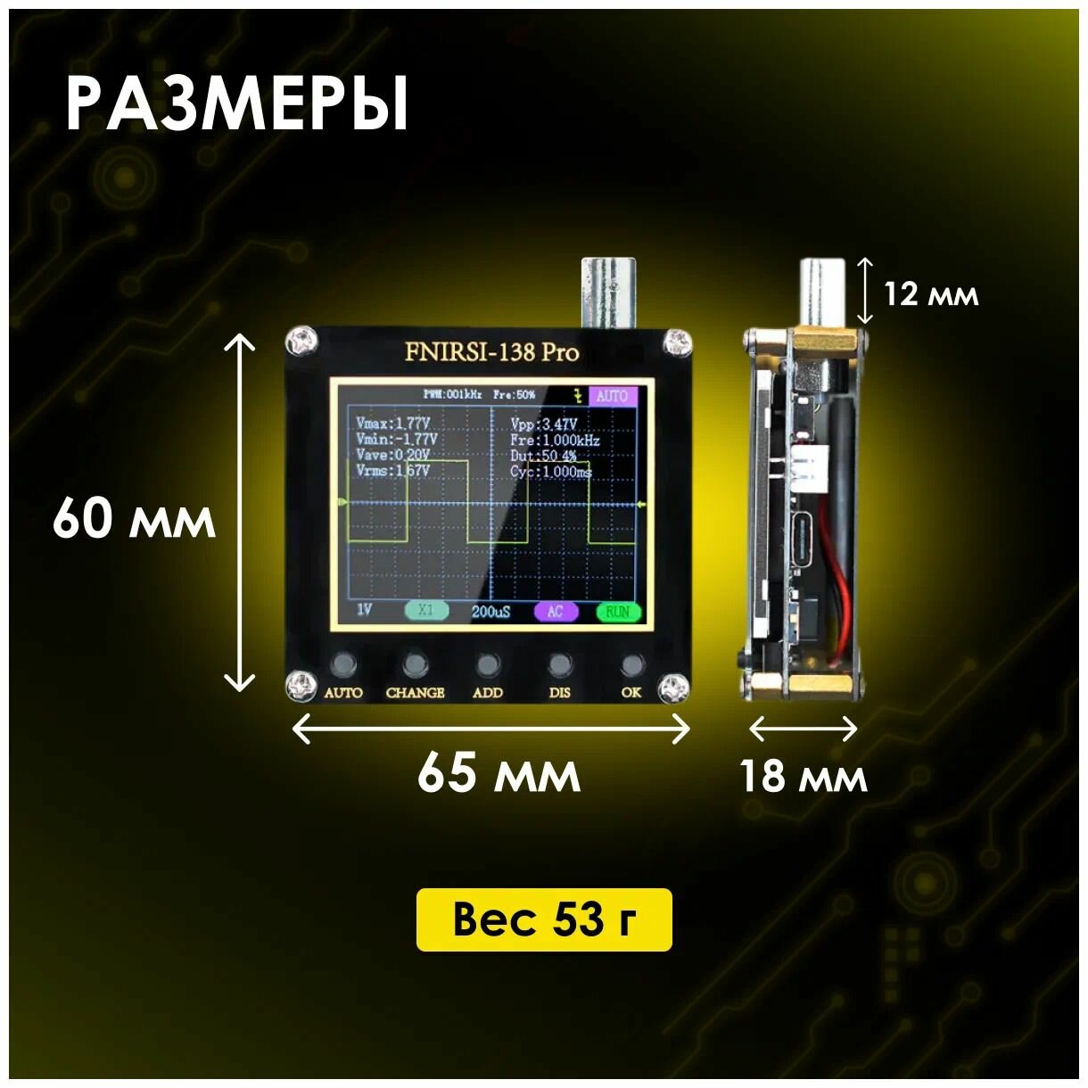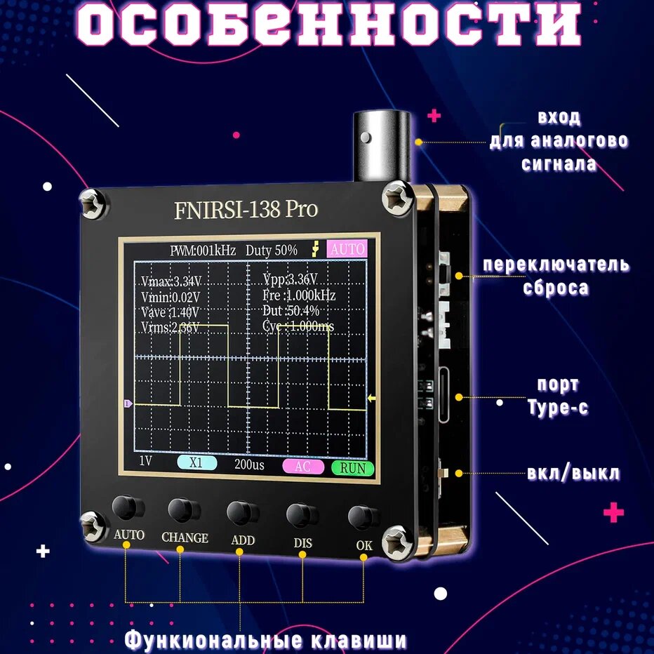 Портативный осциллограф FNIRSI DSO-138 PRO с батареей интересное:
