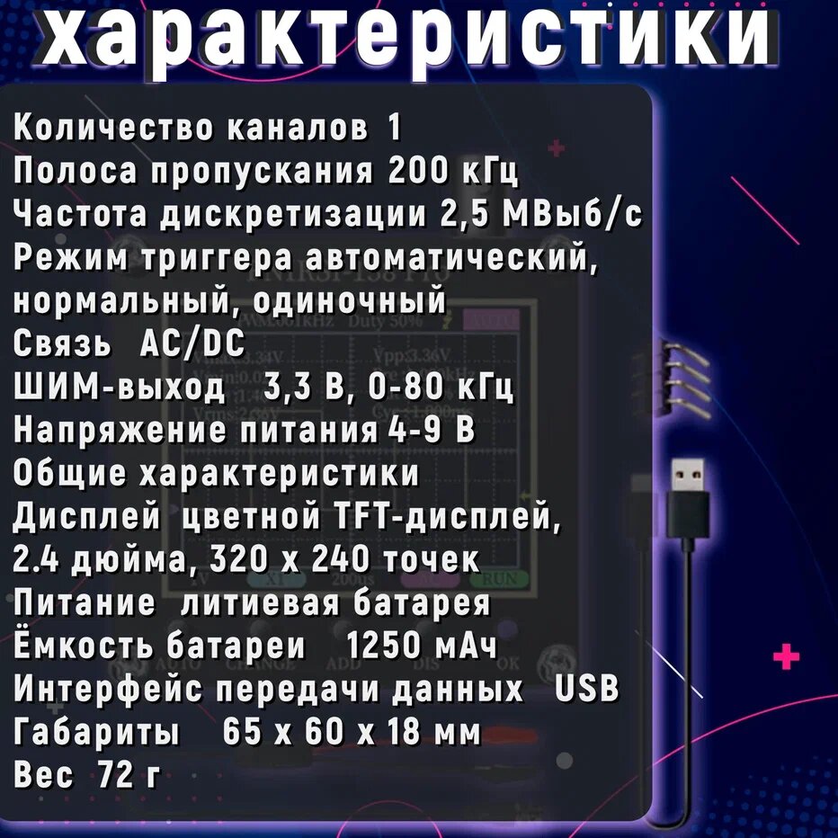 Цифровой осциллограф 3 в 1, портативный мультиметр, генератор сигналов со встроенным аккумулятором