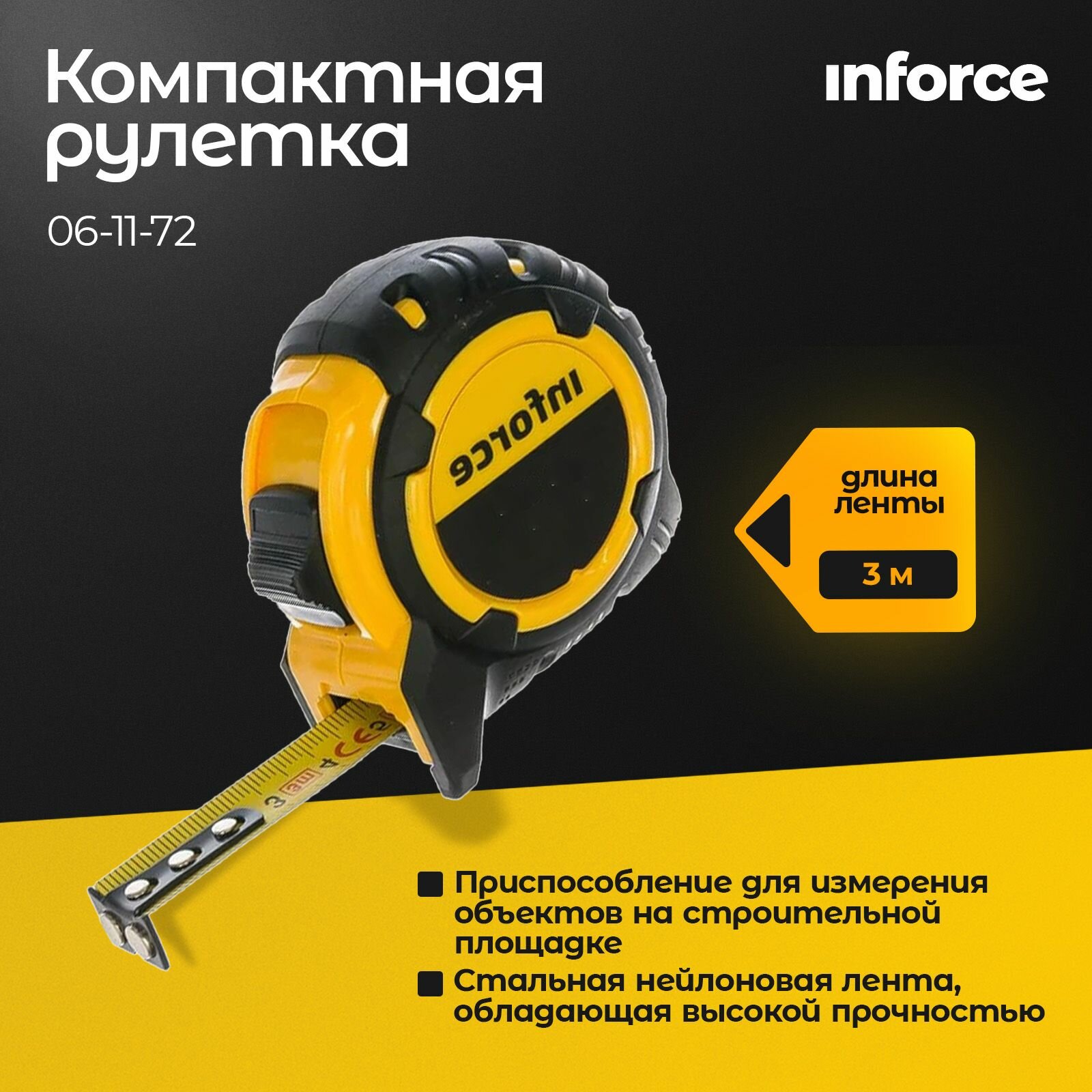 Купить Рулетка компактная 3Х16 Inforce 06-11-72