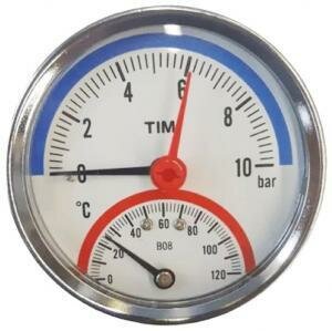 Купить Термоманометр аксиальный 1/2" - 10 бар, 0 - 120 гр. TIM Y-80T-10