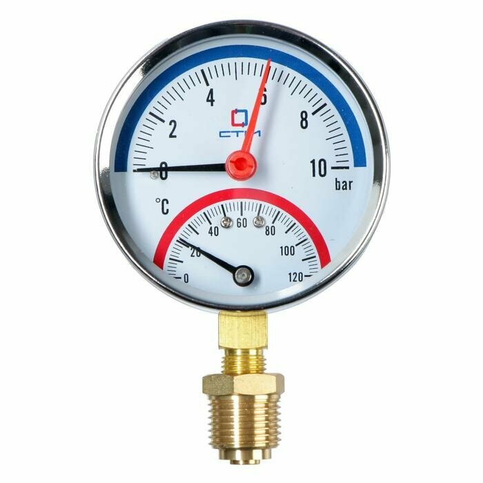 Термоманометр "CTM", радиальный, Дк 80 мм, 1 МПа, наружная резьба 1/4", 120°С./В упаковке шт: 1 интересное: