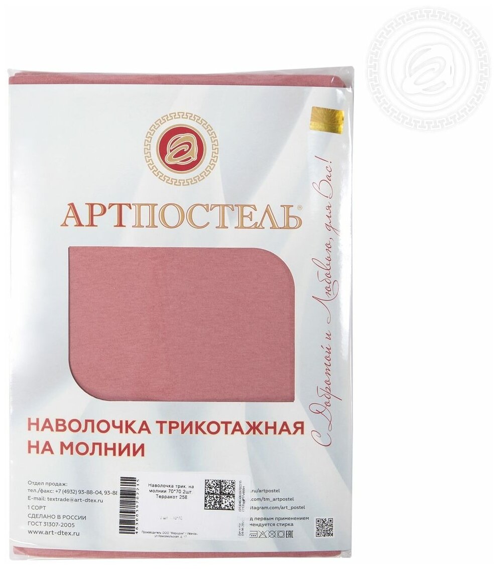 Купить Наволочка на молнии "Терракот", трикотаж, 70*70