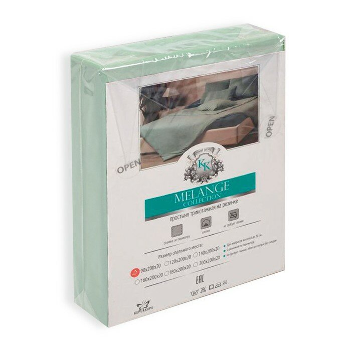 Купить KUPU-KUPU Простыня на резинке «Купу-купу», 160х200х20 см, ментол, трикотаж