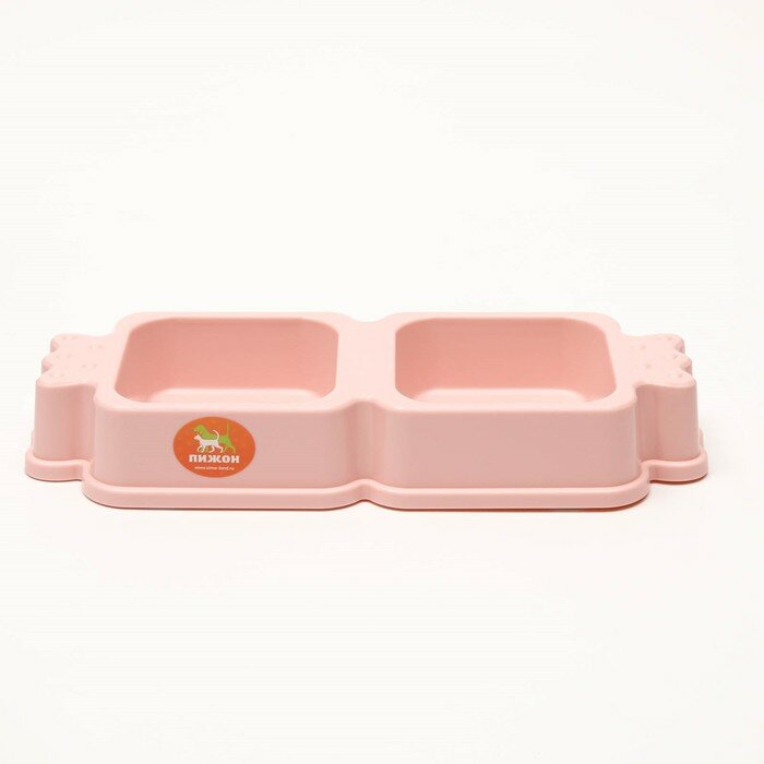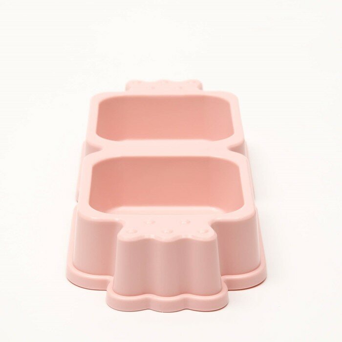 Купить Миска пластиковая двойная, розовая, 35 х 14,5 х 5,5 см, 330 мл