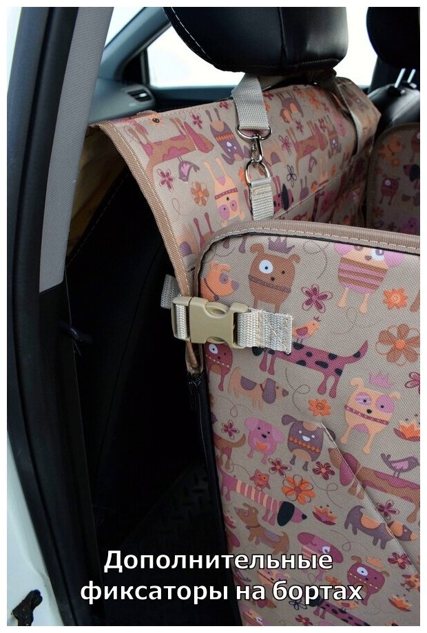 Автогамак Хэппи Дог Премиум. На 1/3 заднего сиденья. Цвет: собаки на бежевом фон