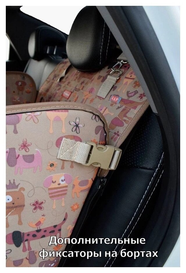 СохранитьАвтогамак для перевозки собак Happy Dog Premium (Хэппи Дог Премиум). На 1/3 заднего сиденья. Цвет: собаки на бежевом фоне. интересное: