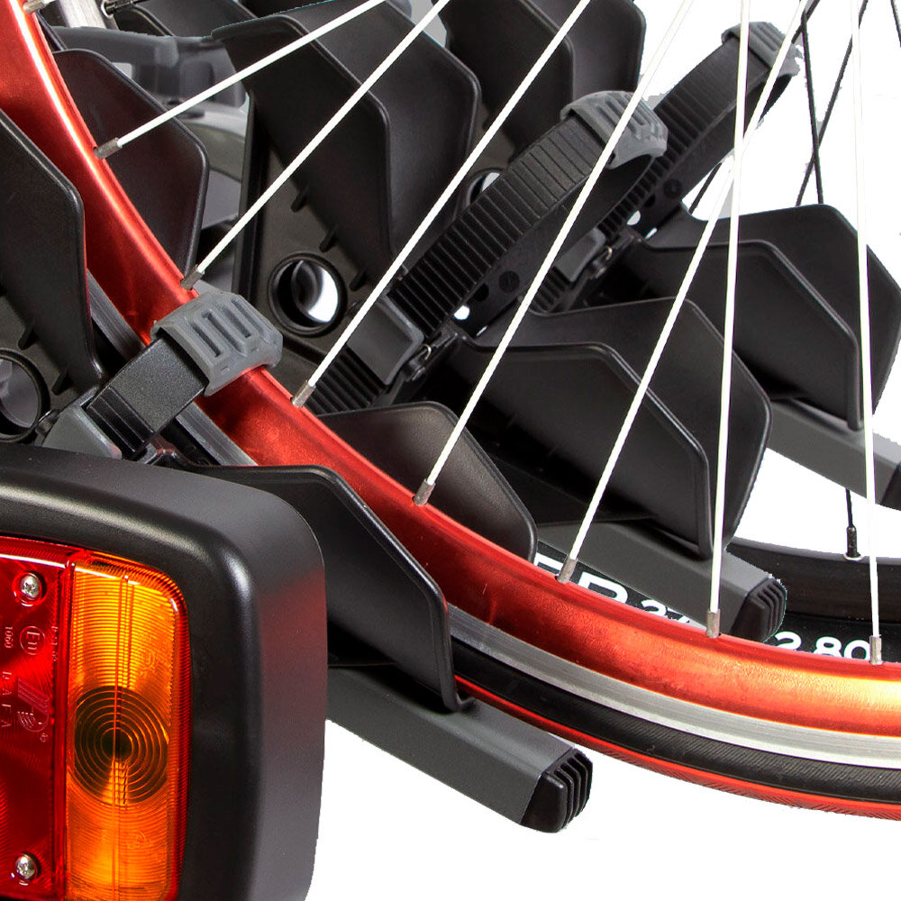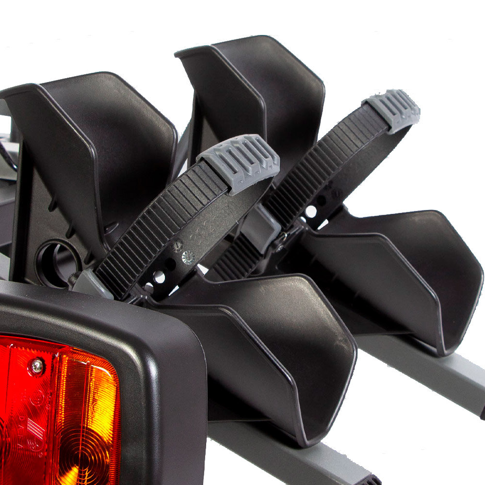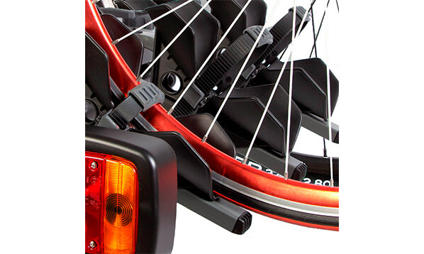 | Минусы: | Хлипкая рамка для номера и фонарей, смягчающая резинка на хомутах для крепления рамы велосипедов слишком узкая - нужно подкладывать тряпку, иначе рама может поцарапаться. |