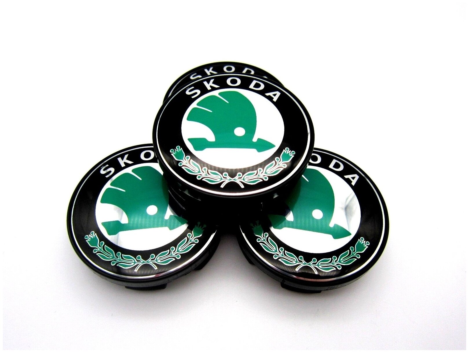 Колпачки, заглушки на литые диски СКАД Шкода зеленые, 56/51/12 мм, комплект 4 шт.