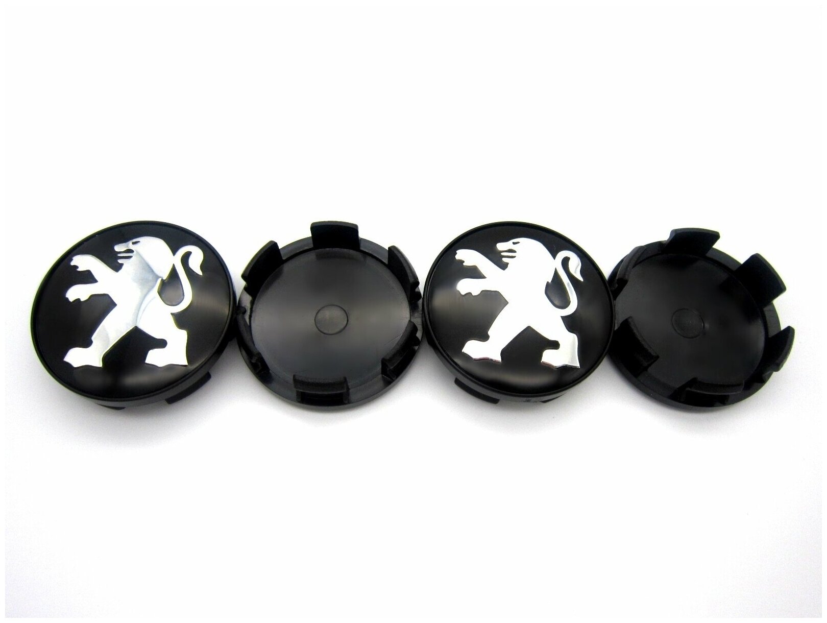 Колпачки, заглушки на литые диски СКАД Пежо черный, 56/51/12 мм, комплект 4 шт.