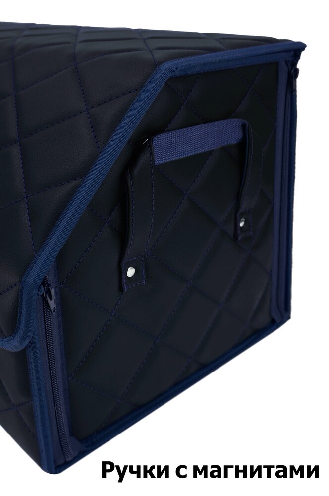 Саквояж в багажник автомобильный эко кожа черная синий ромб, объем 45 л