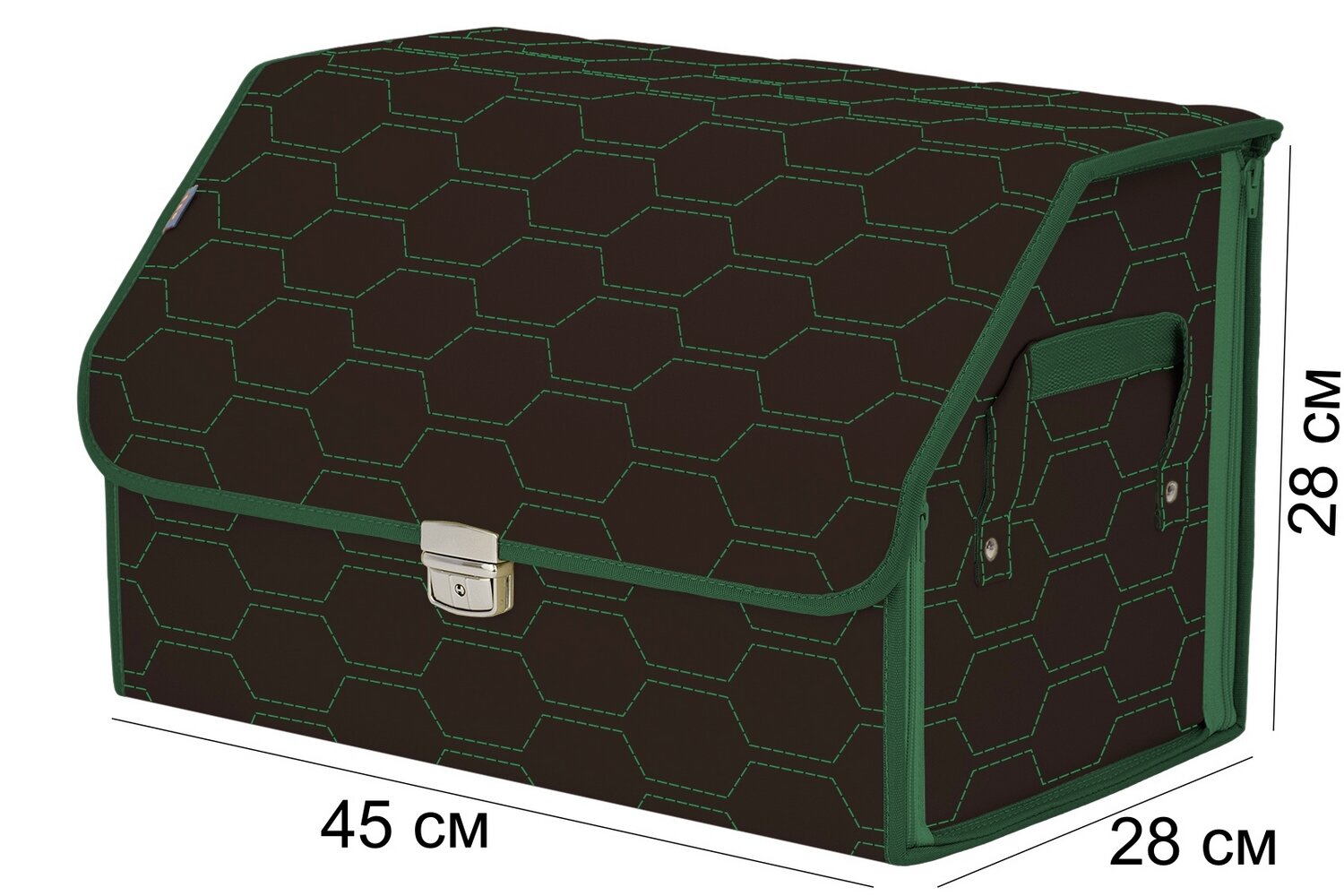 Купить Органайзер-саквояж в багажник "Союз Премиум" (размер L). Цвет: коричневый с зеленой прострочкой Соты.