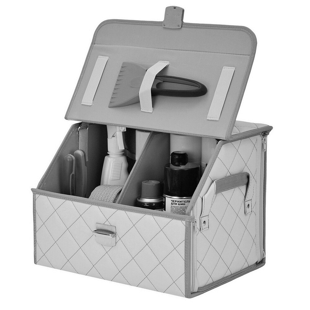 Органайзер в багажник "Союз Премиум" (размер M). Искожа. Цвет: черный с серой прострочкой ромб.
