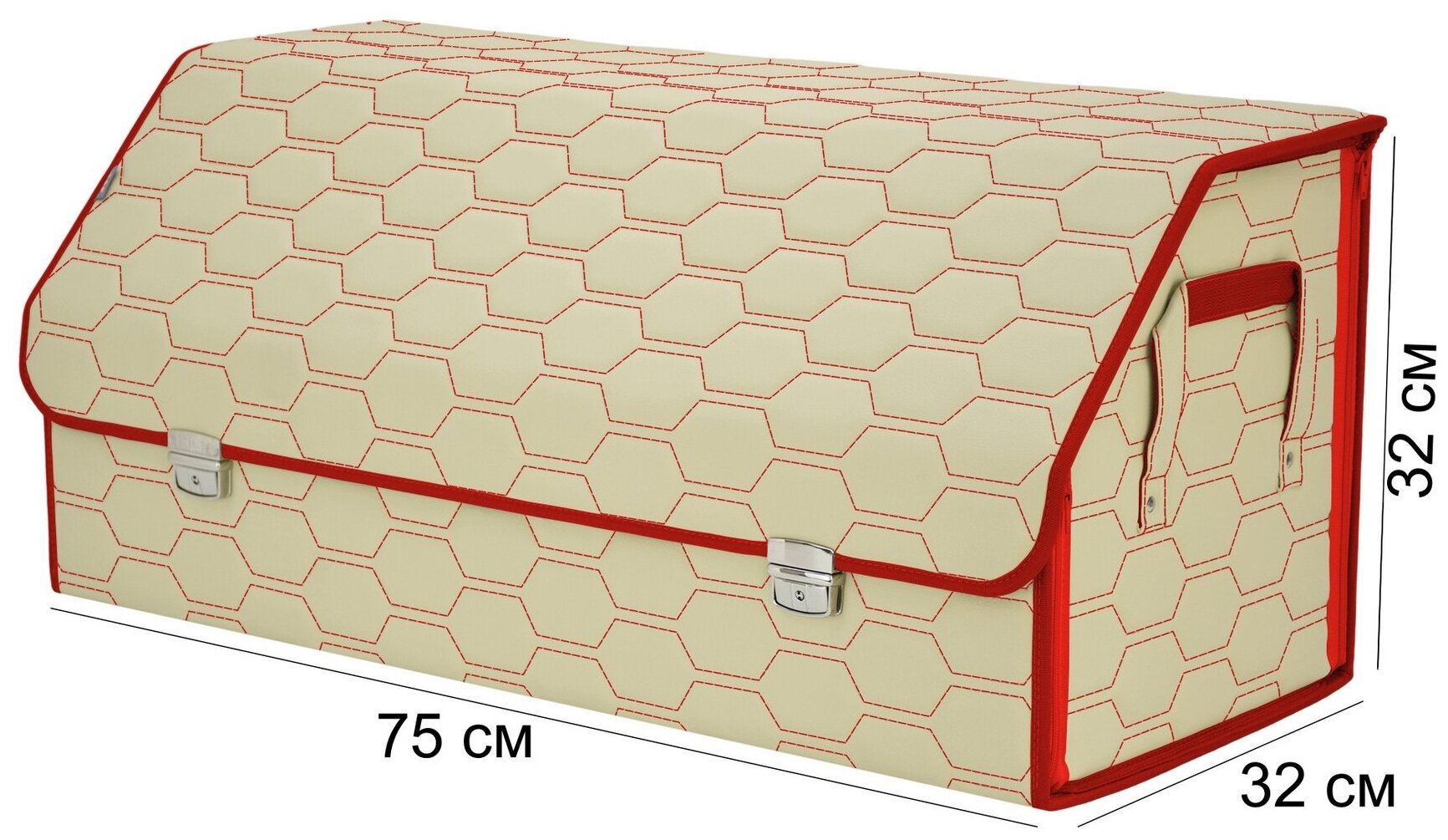 Органайзер-саквояж в багажник "Союз Премиум" (размер XXL). Цвет: светло-бежевый с красной прострочкой Соты. интересное: