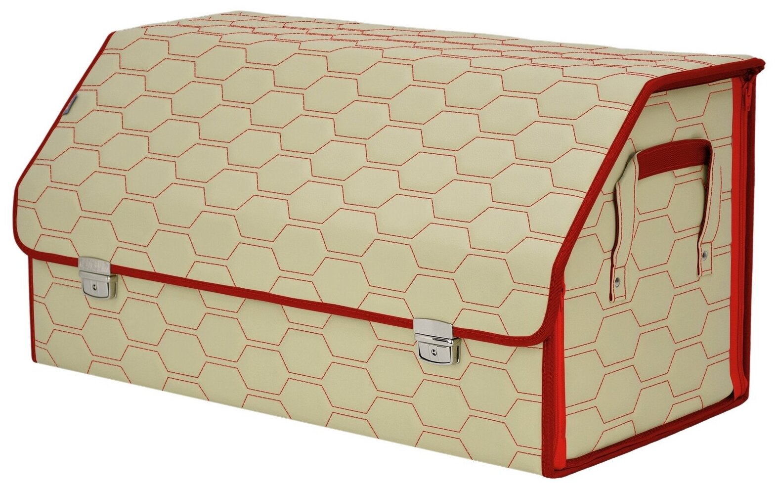 Купить Органайзер-саквояж в багажник "Союз Премиум" (размер XL Plus). Цвет: светло-бежевый с красной прострочкой Соты.