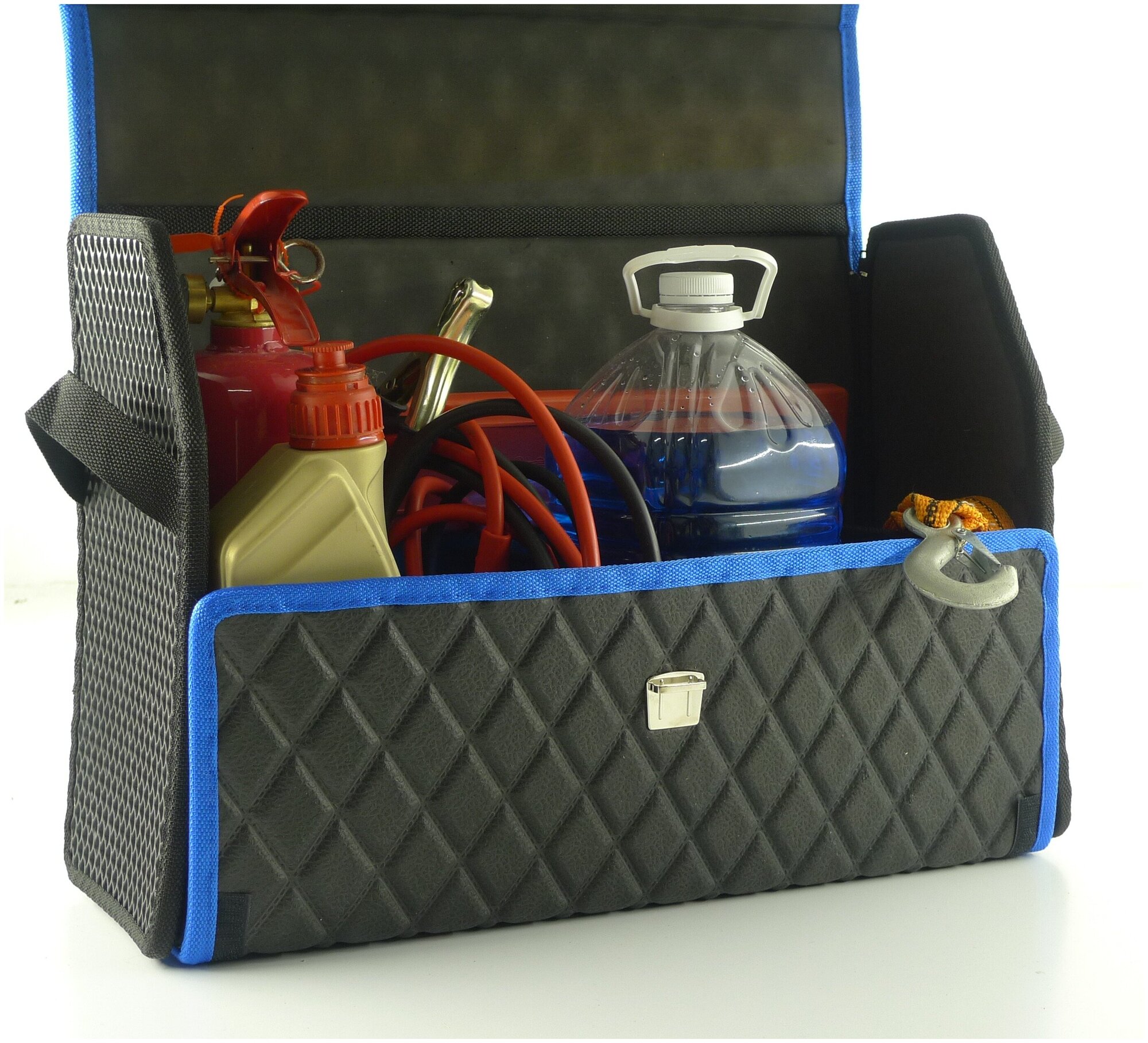 Саквояж в багажник автомобильный эко кожа черная синий ромб, объем 45 л