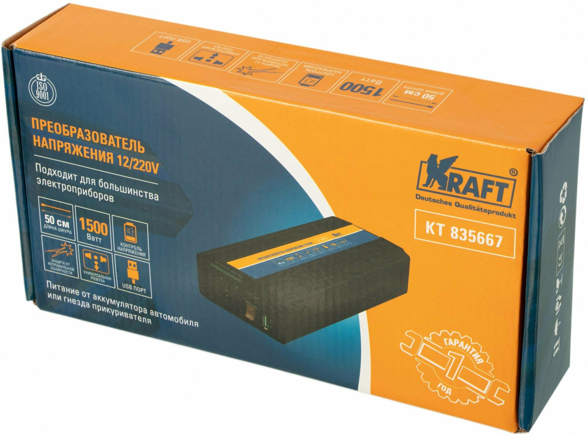 Инвертор Автомобильный 12/220V 1500W Kraft Kraft арт. KT835667 интересное: