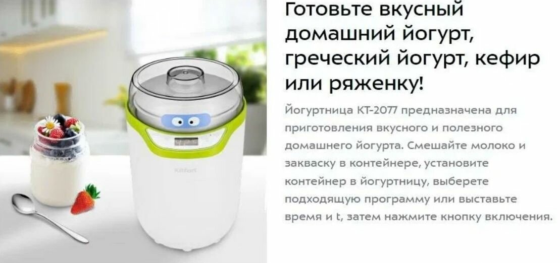 Йогуртница Kitfort КТ-2077-2 бело-салатовый интересное: