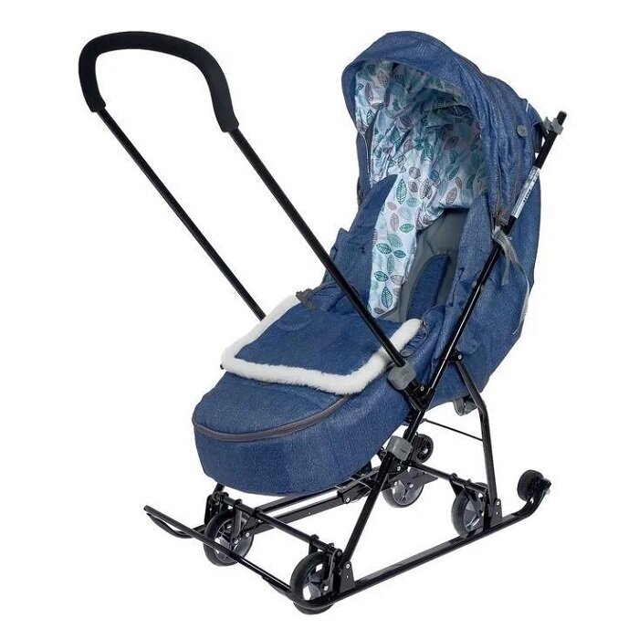 Санки-коляска Nika Наши детки 6 НДТ6, синий джинс с листочками