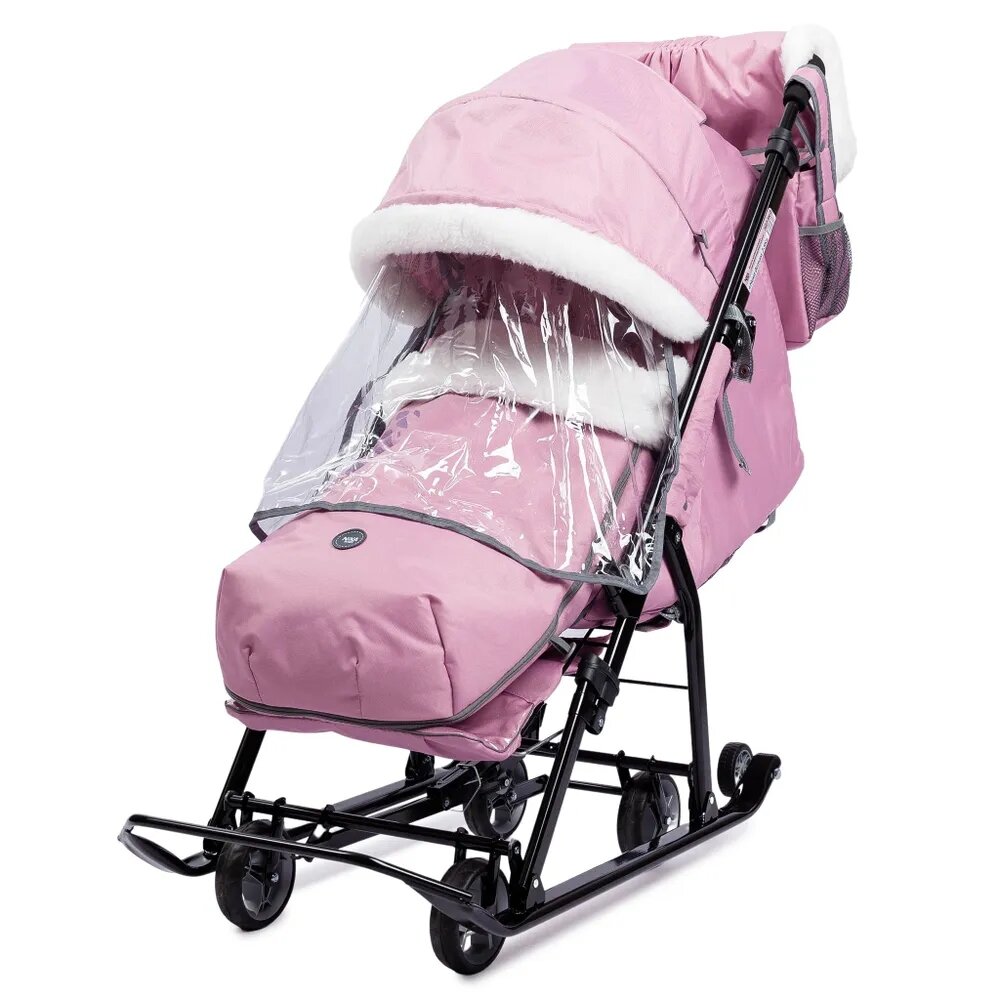 Санки-коляска НД7-5К/2 пыльно-розовый с шишкой /Ника