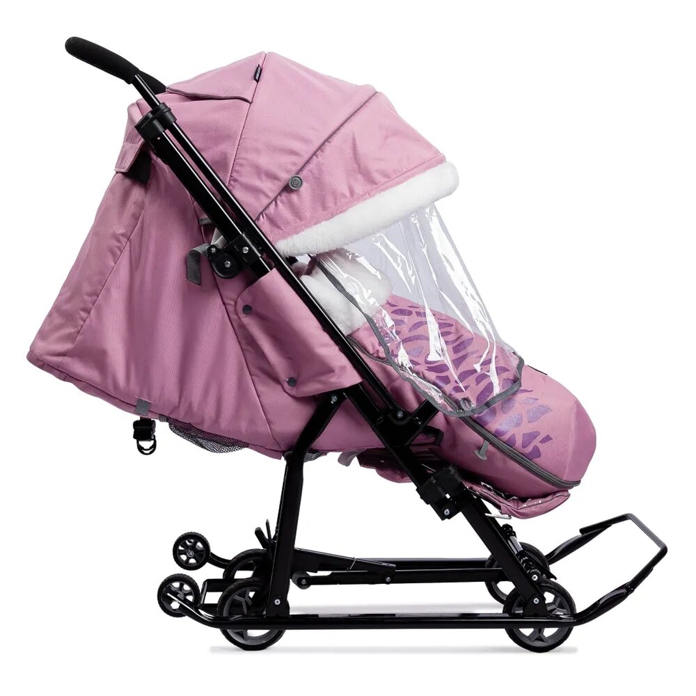 Санки-коляска НД7-5К/ПР пыльно-розовый с шишкой (серый каркас) /Ника