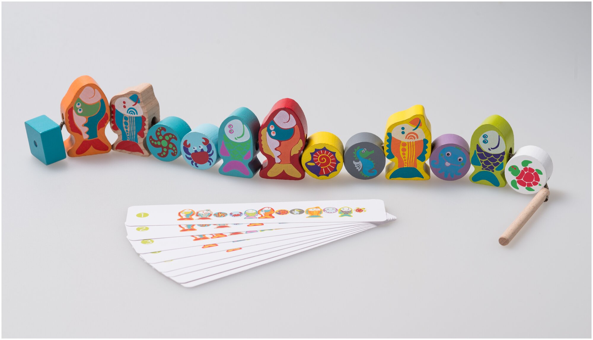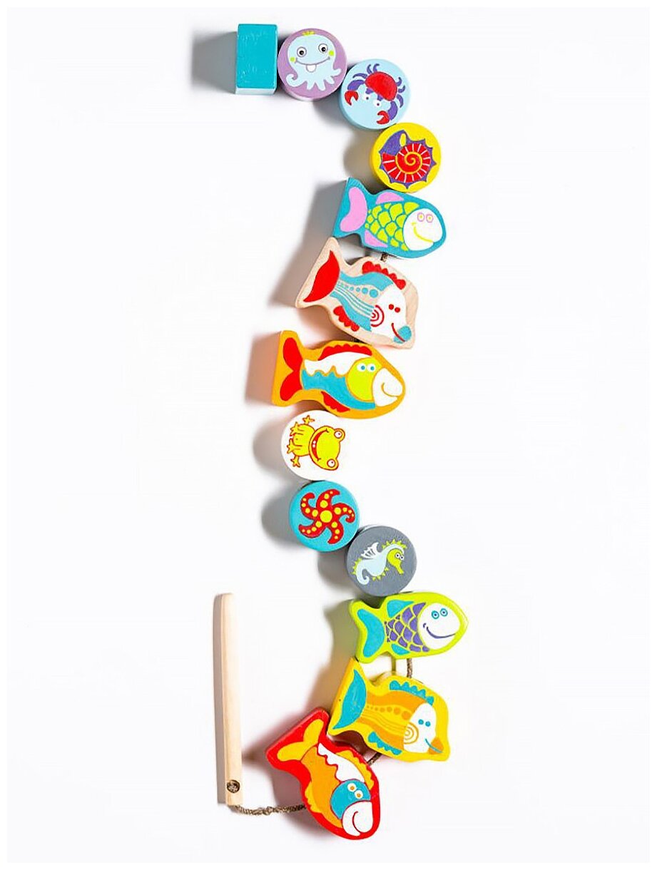 Шнуровка бусы деревянные CUBIKA Рыбки, сортер Монтессори для малышей, развивающие деревянные игрушки для девочек и для мальчиков, 12 деталей интересное: