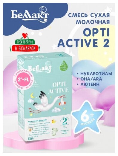 Смесь сухая молочная последующая адаптированная "Bellakt Opti Activе 2" для питания детей с 6 месяцев, 400 гр. интересное: