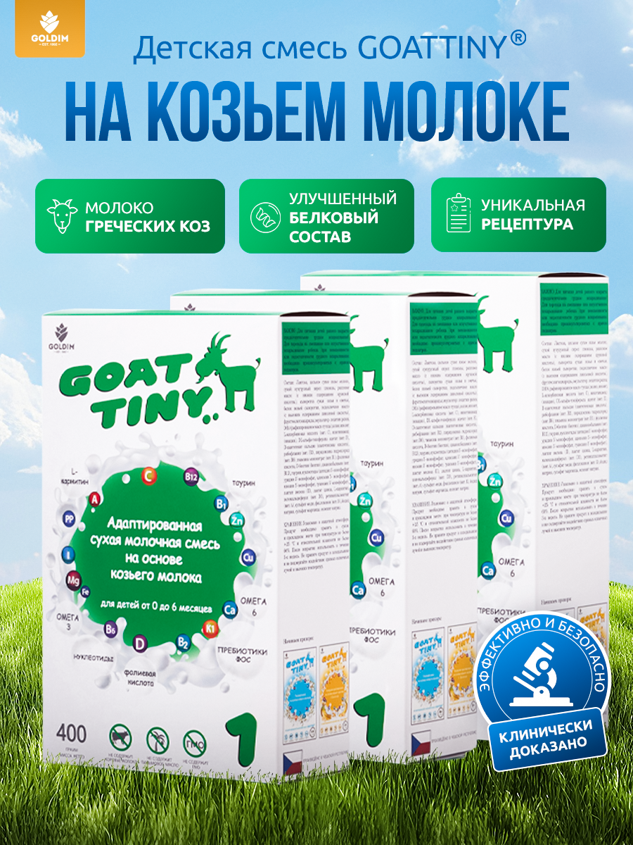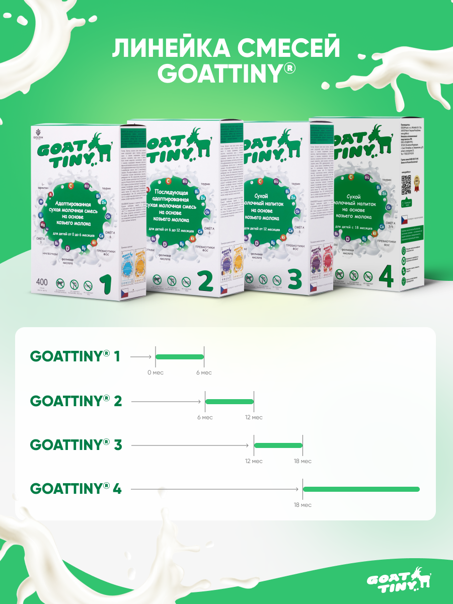 Адаптированная сухая молочная смесь GOATTINY ® 1 на основе цельного козьего молока для детей с рождения 400 г,3 шт. интересное: