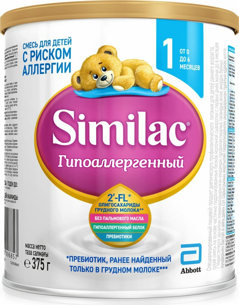 У дочки, которая на смеси с рождения была почему-то реакция в виде сыпи и врач нам сказал, что у нее может быть аллергия - нужно переходить на гипоаллергенную смесь - мы так и сделали. Попробовали разные фирмы и остановились на Симилак Гипоаллергенный 1, потому что ребенок как-то очень активно ее пил и сыпи не появлялось, странно, что даже на гипоаллергенные смеси других производителей появлялась реакция и запах был намного хуже Симилака.