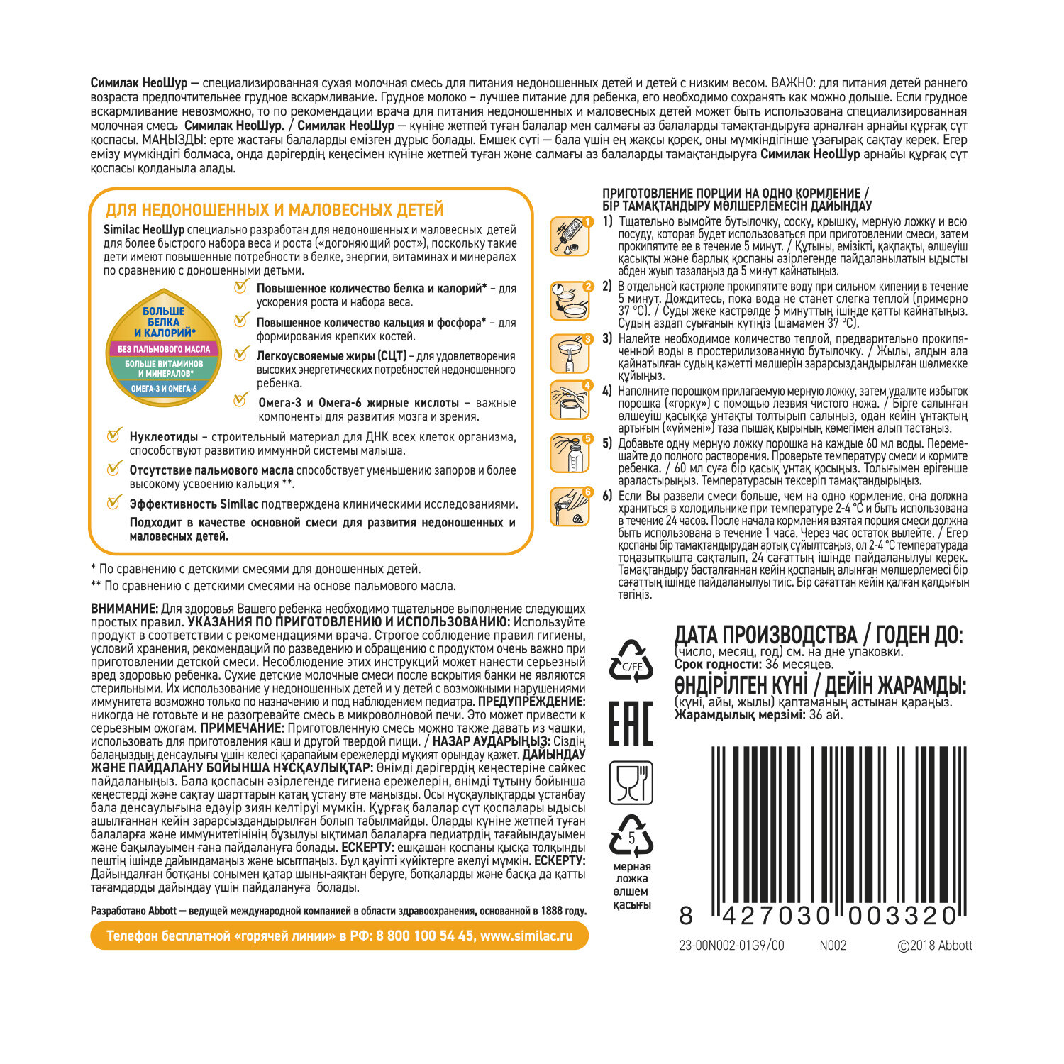 При выписке из больницы рекомендовали 2 смеси Similac (Abbott) НеоШур (с рождения) и Nutrilon (Nutricia) Пре 0 (с рождения).