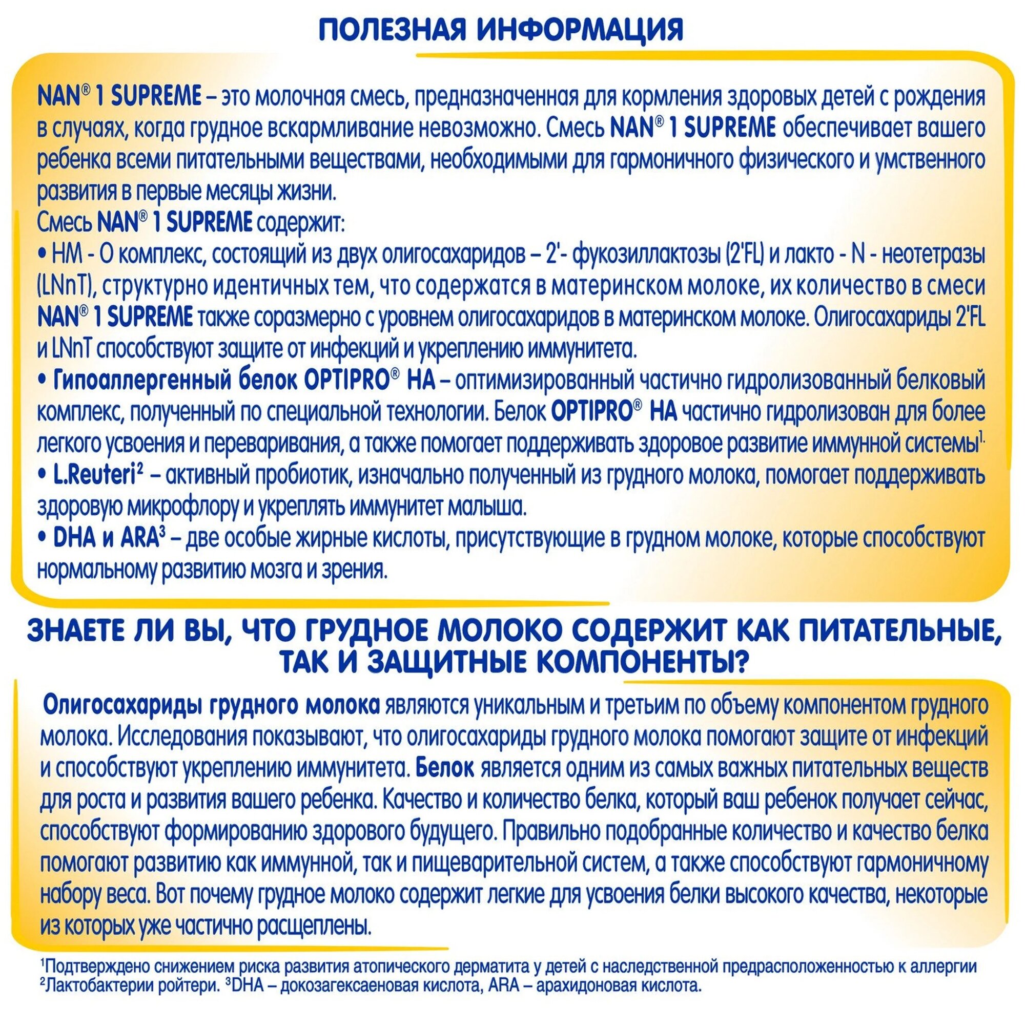 Смесь NAN Supreme. Cухая быстрорастворимая адаптированная молочная смесь с олигосахаридами на основе частично гидролизованного белка молочной сыворотки, 0-12 мес, 400 г