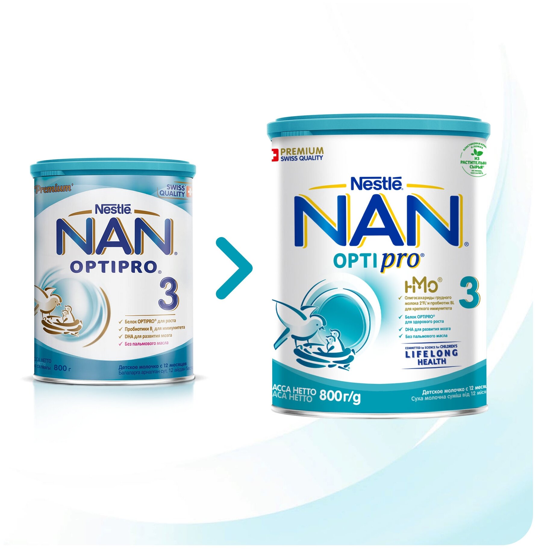 Смесь NAN (Nestlé) 3 Optipro с олигосахаридами 2'FL, с 12 месяцев, 800 г