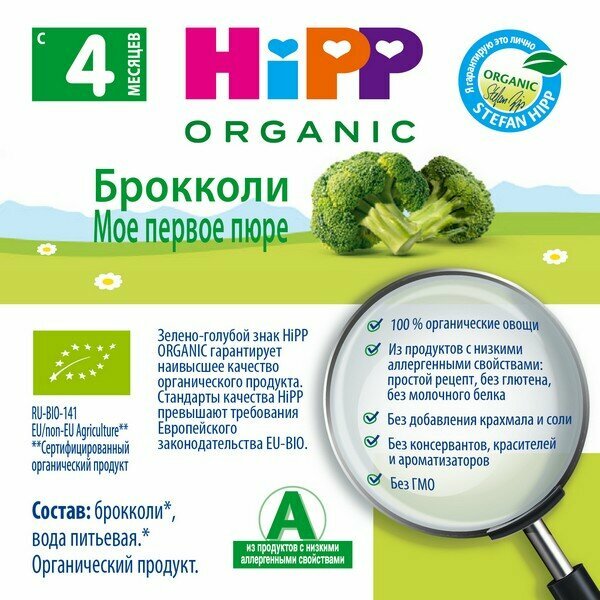 Органическое овощное пюре HiPP " Брокколи, моё первое пюре", 80 гр./1шт интересное: