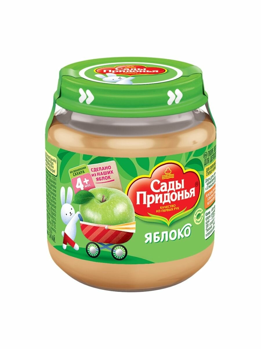 Пюре Сады Придонья яблоко, с 4 месяцев, стеклянная банка, 80 г, 12 шт.