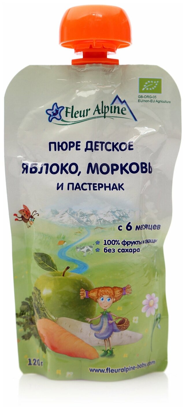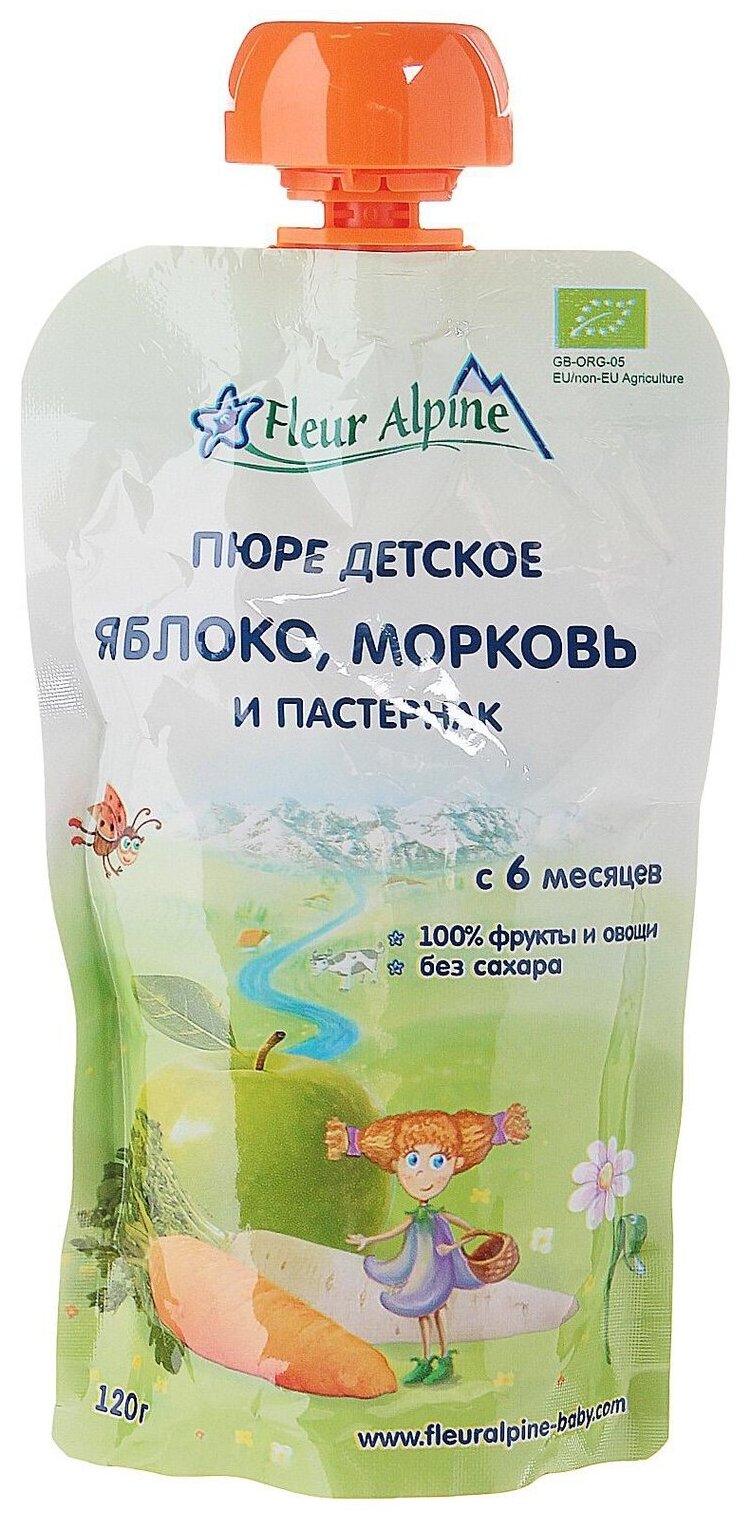 Пюре Fleur Alpine Органик яблоко-морковь-пастернак (пауч), 6 мес., 120 г интересное:
