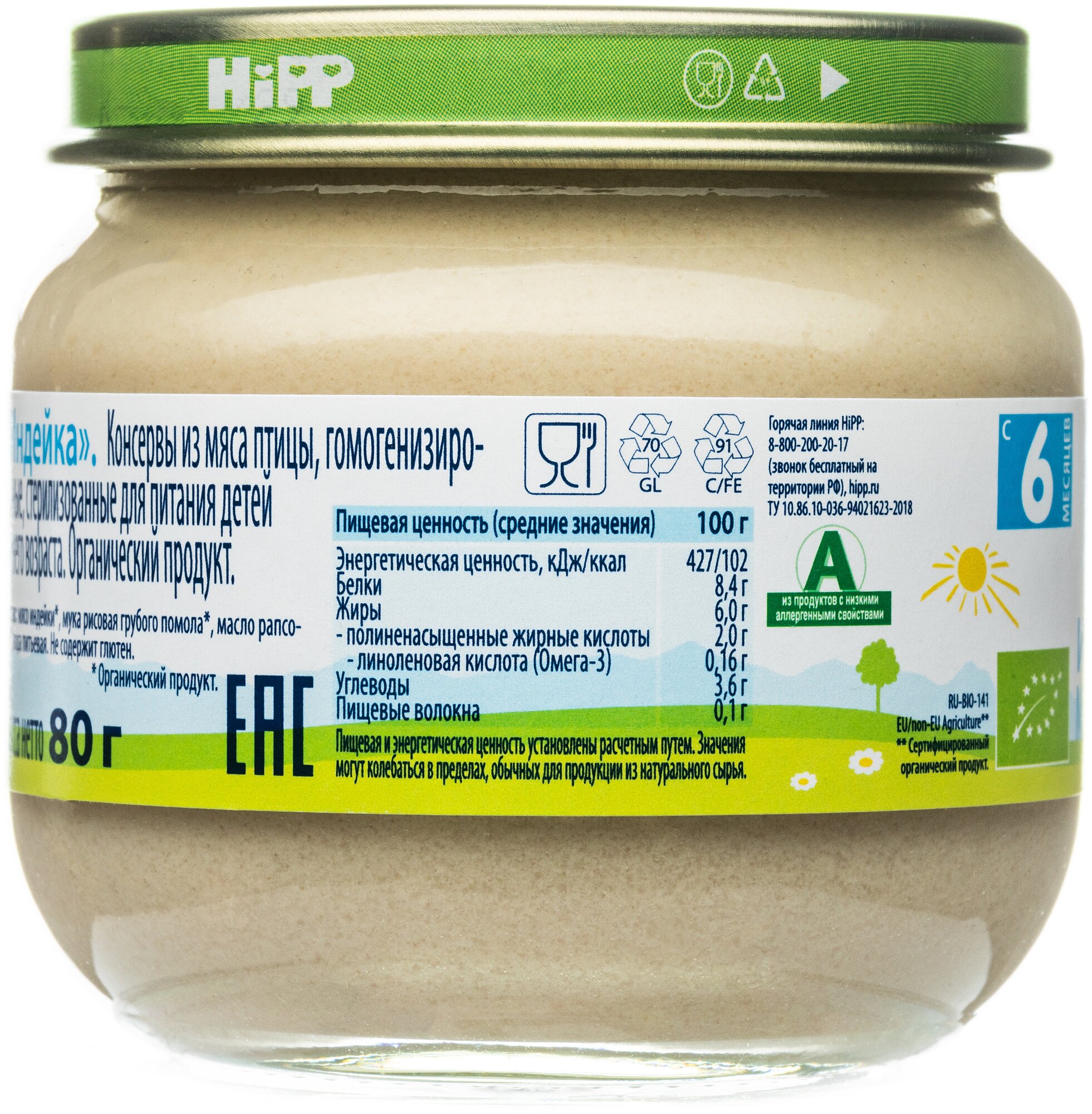 Органическое мясное пюре HiPP "Индейка, моё первое пюре", 80 гр. /1шт интересное: