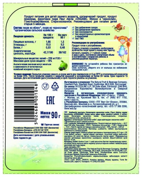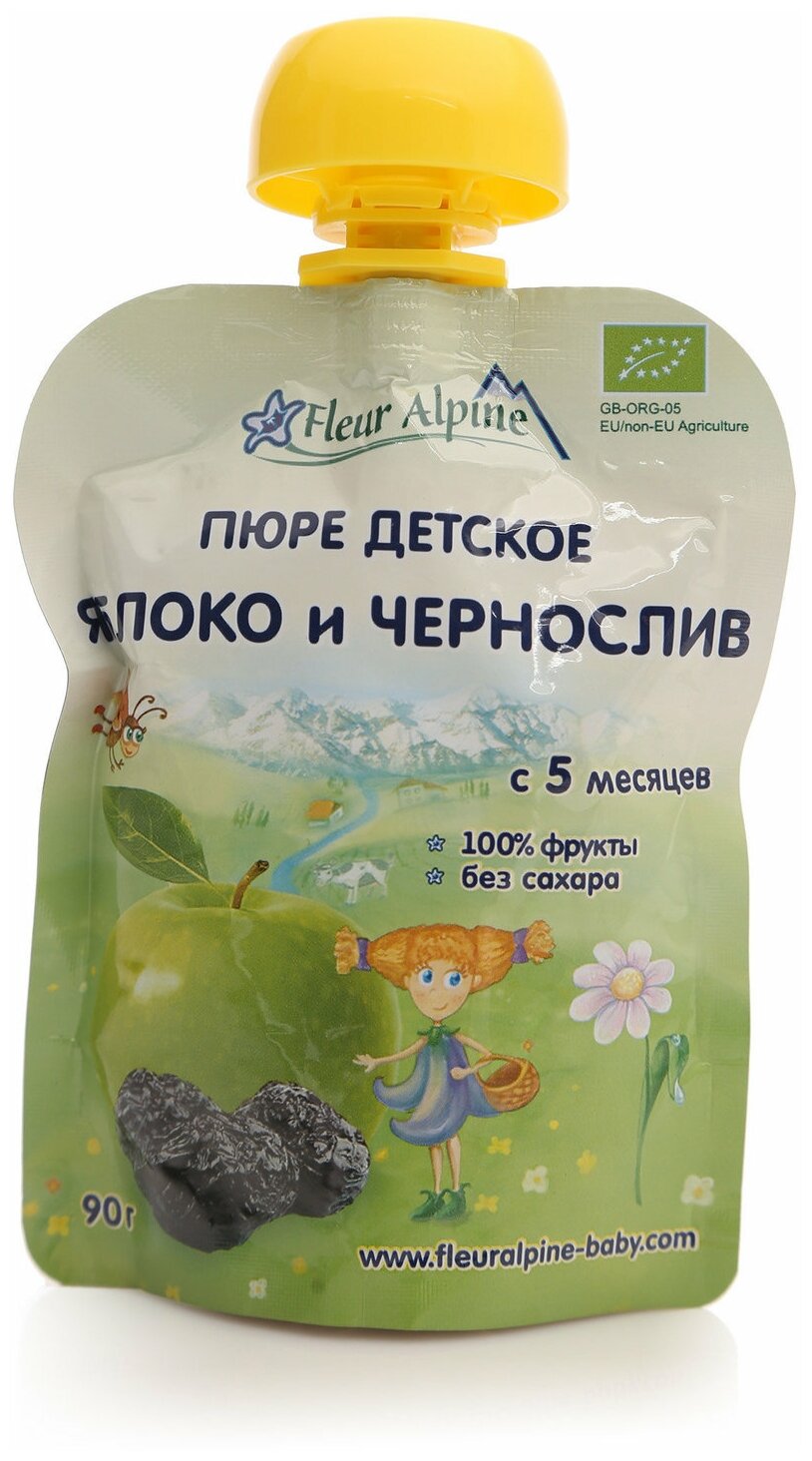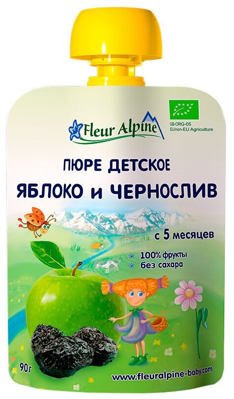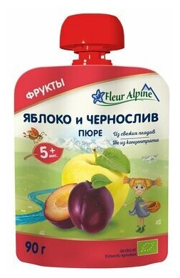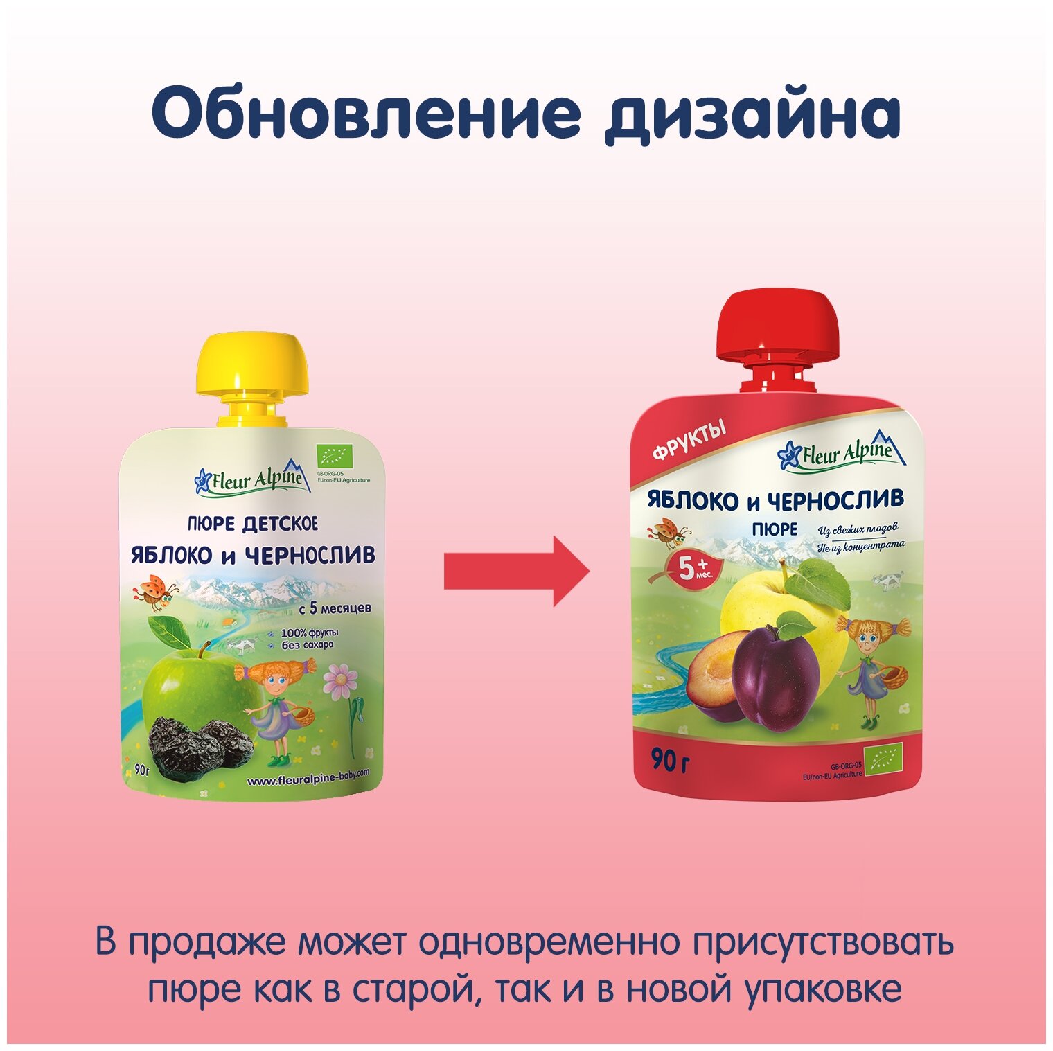 Пюре Fleur Alpine Органик яблоко-чернослив (пауч), 5 мес., 90 г интересное: