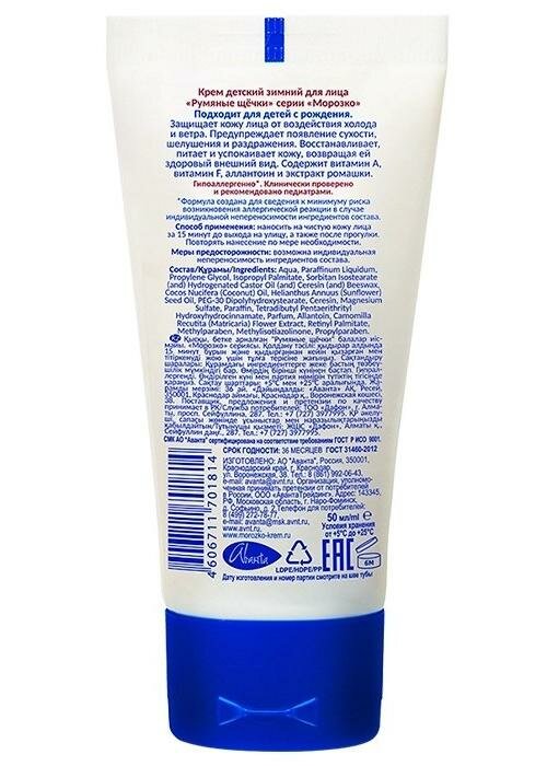 Крем детский зимний Аванта "Морозко" Румяные щечки, 50 мл