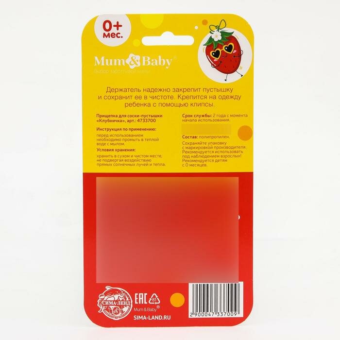 Держатель для пустышки "Mum&Baby", "Клубничка", на цепочке,