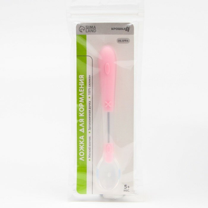 Купить Ложка детская для кормления силиконовая, от 5 мес., цвет розовый
