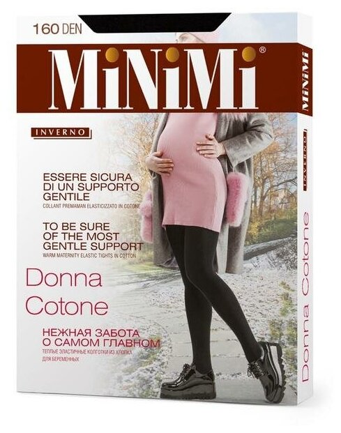 Теплые хлопковые колготки для беременных Minimi DONNA COTONE 160, размер 2, цвет Черный