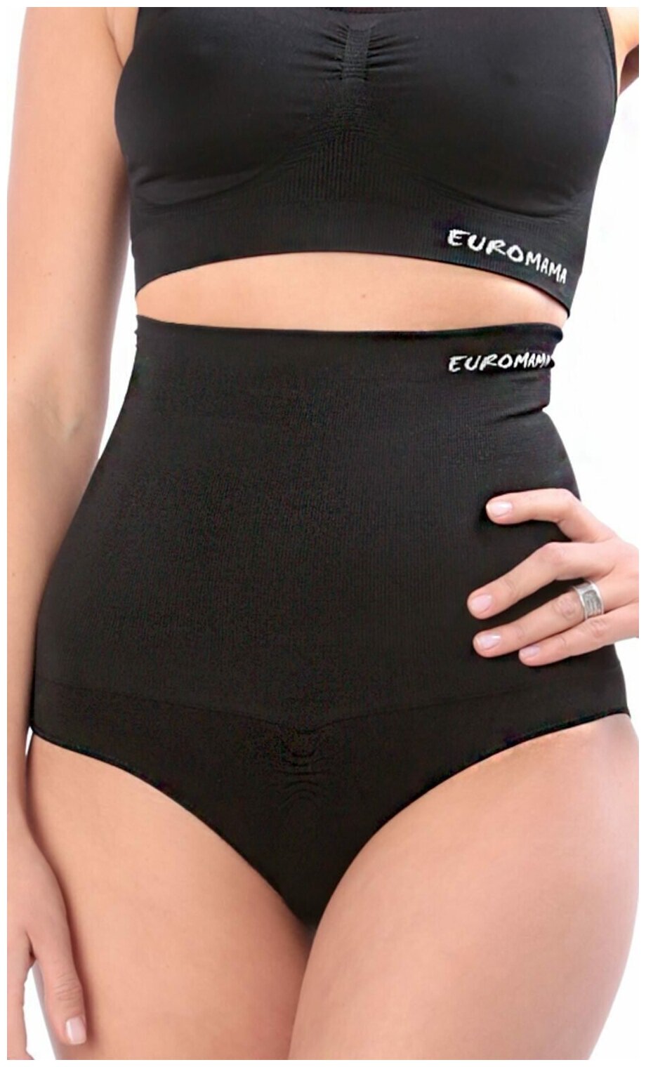 Euromama трусы утягивающие послерод, бесшовные с силик.лентой ем 6153 , L, черный