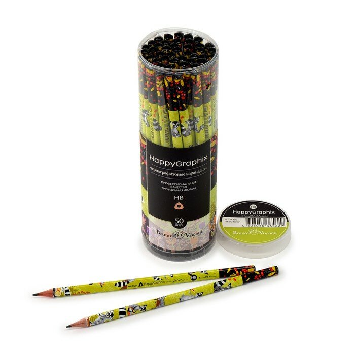 BrunoVisconti Карандаш чернографитный 2 мм HappyGraphix «Енот на самокате», НВ, трёхгранный интересное: