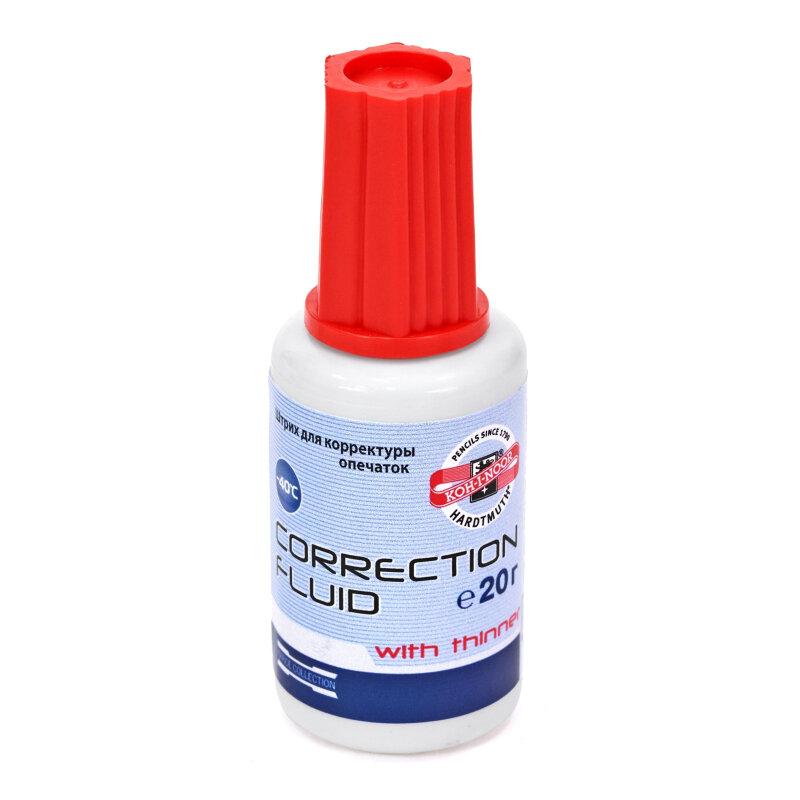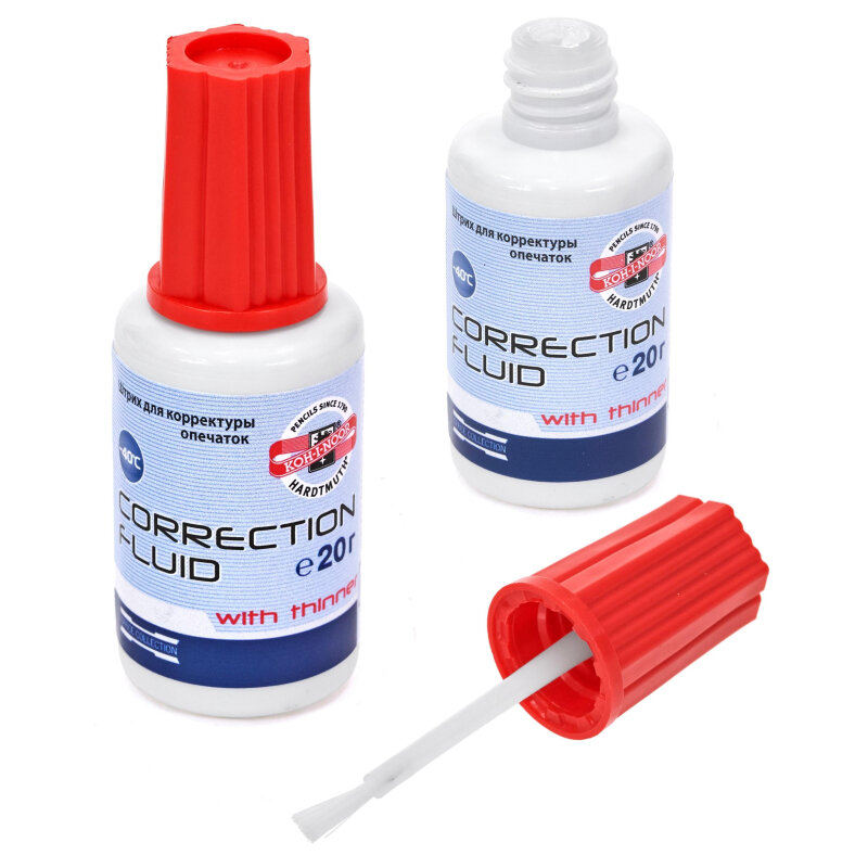 Купить Корректирующая жидкость Koh-I-Noor, 20 мл, быстросохнущая, химическая основа, с кисточкой