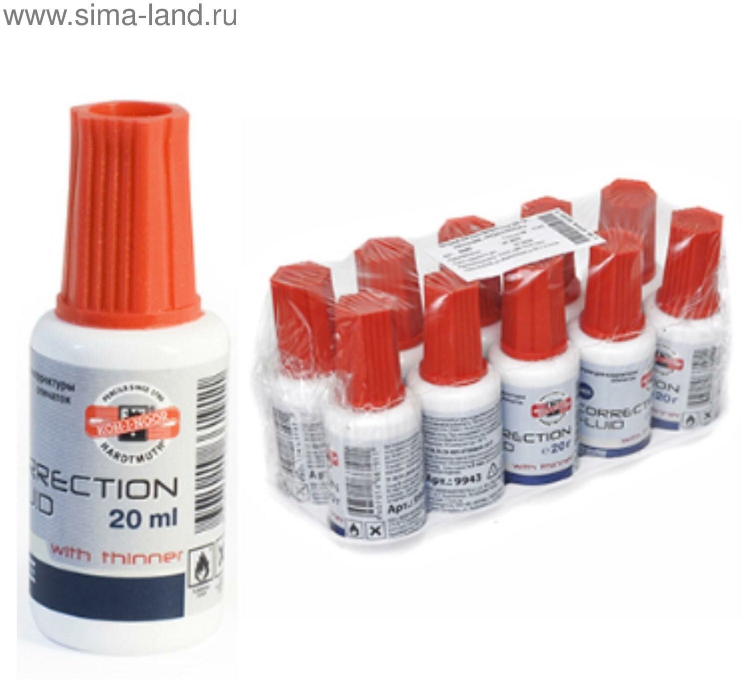 Корректирующая жидкость 20 мл, быстросохнущая, химическая основа, с кисточкой