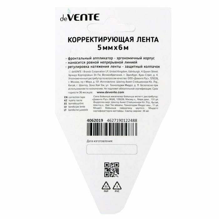 Корректирующая лента 5 x 6 мм, deVENTE Ghost, регулировка натяжения ленты, фронтальный аппликатор интересное: