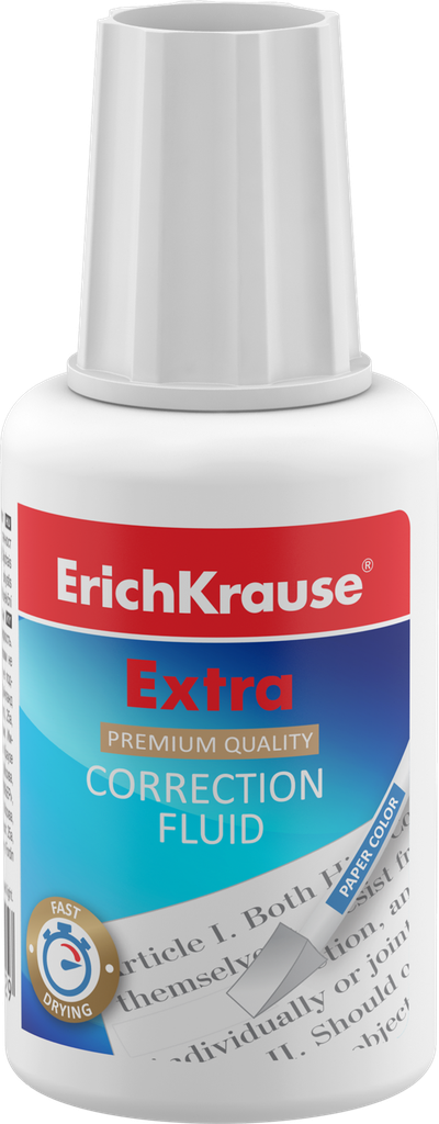 Корректирующая жидкость 20 мл, ErichKrause Extra, быстросохнущая, экономичный расход, на основе растворителя, с губкой