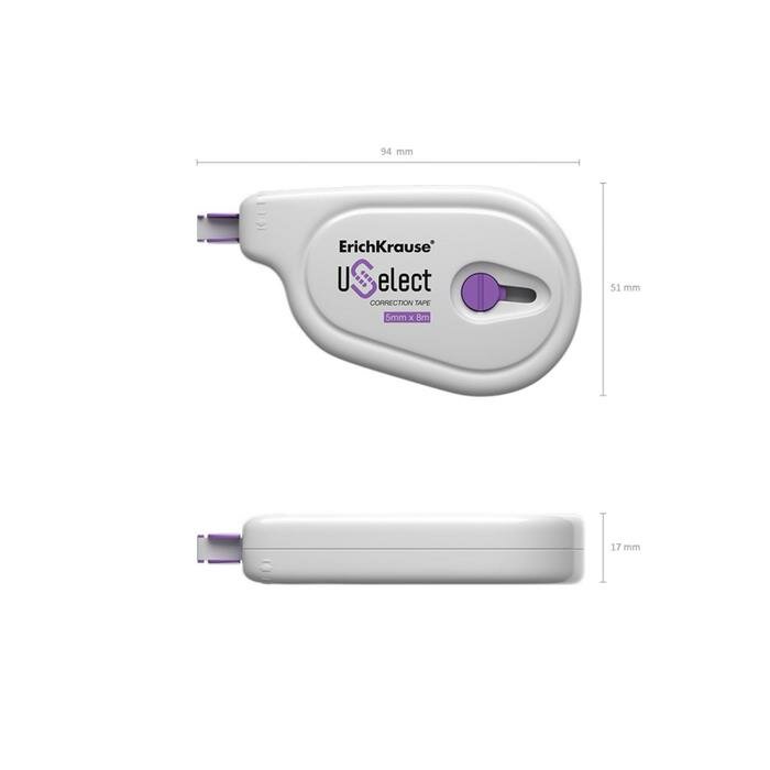 Купить Корректирующая лента ErichKrause Uselect, 5 мм х 8 метров, с поворотным аппликатором, в блистере, микс