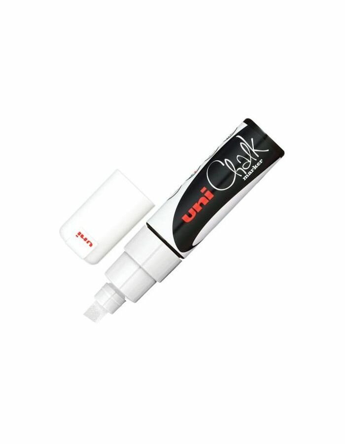 Маркер Маркер меловой UNI "Chalk", 8 мм, белый, влагостираемый, для гладких поверхностей, PWE-8K WHITE