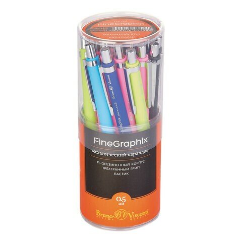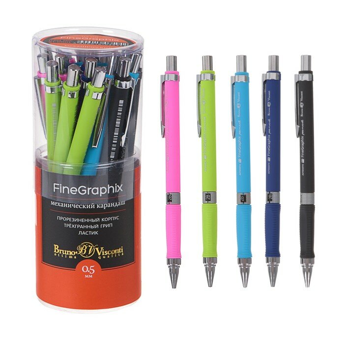 Карандаш механический 0,5 мм, BRUNO VISCONTI "FineGraphix", корпус soft-touch, ассорти, ластик, 21-0001 интересное: